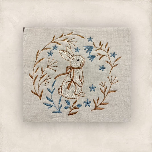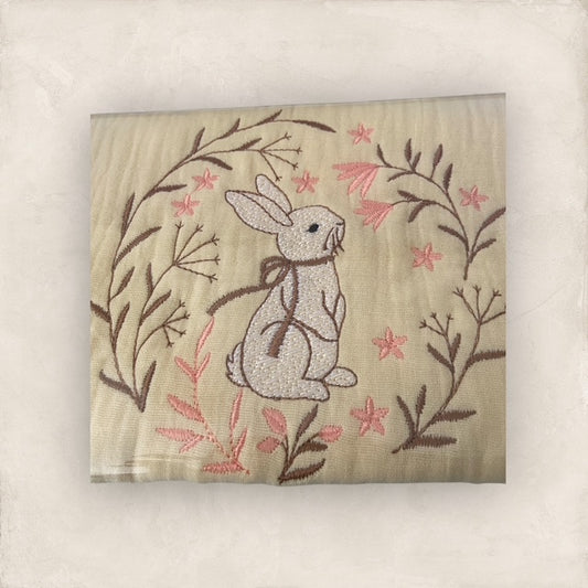 Round Ruffle Pie Dish - Bunny Holding Tulips - Heartfelt Traditions Pottery