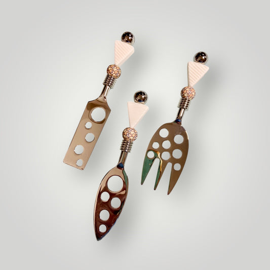 Cheese Knife Set with Mango Wood Block - White Cheese