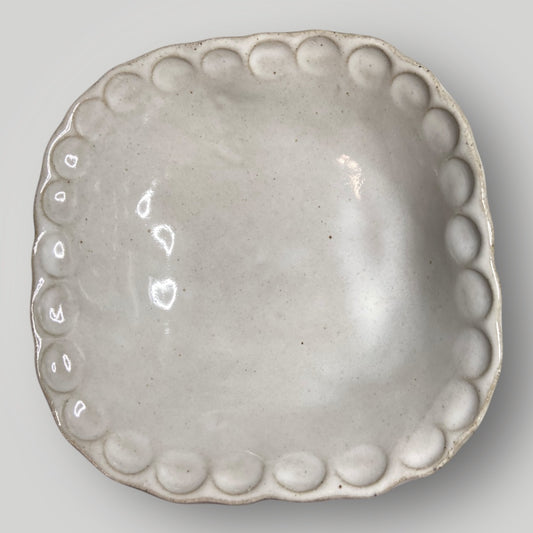 Small Square Bowl - Ivory Linen - Fingerprint Pottery