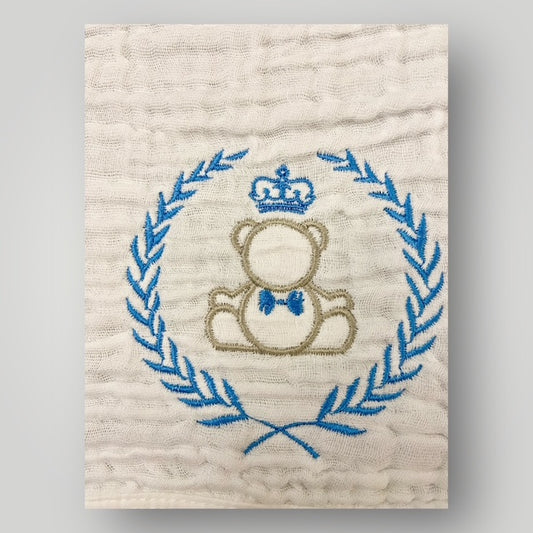 Regal Crowned Bear & Laurel - Blue - Burp Cloth