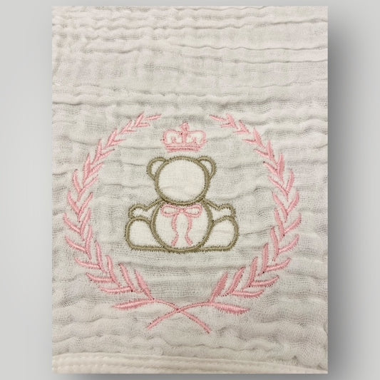 Regal Crowned Bear & Laurel - Pink - Burp Cloth