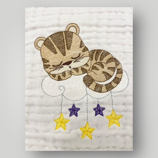 Sleeping Tiger Cub with Stars on Cloud - Burp Cloth