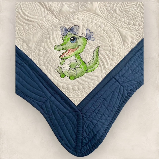 This 3-piece set includes the heirloom quilt, muslin burp cloth and cotton bib.