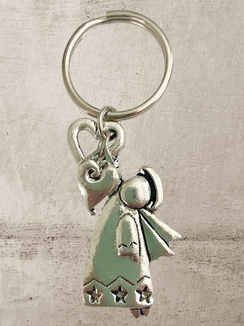 This exquisite pewter keychain features an angel and hearts. Its durable construction ensures longevity, while the stylish design makes it a perfect accessory for keys or bags. This keychain is not only a practical item but also a meaningful gift.