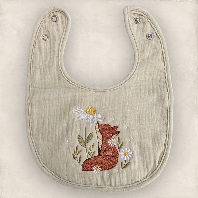 Care instructions: Machine wash on a delicate setting. Air dry to preserve the bib's softness and longevity