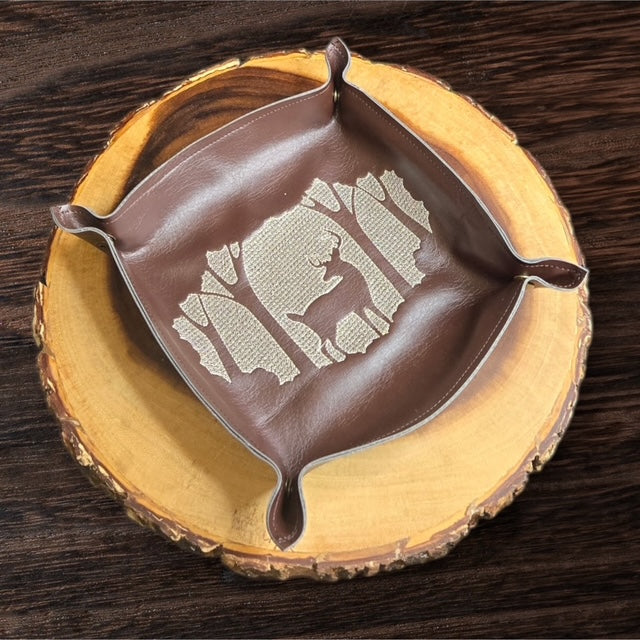 Discover our embroidered valet trays in PU leather, designed as versatile catch‑all organizers for everyday essentials. Measuring approx. 8"x 8", each tray blends durability with hand‑crafted detail—perfect for holding wallets, keys, coins, glasses, or jewelry. Functional and stylish, these trays add refined storage to any space while keeping your daily items neatly in place.