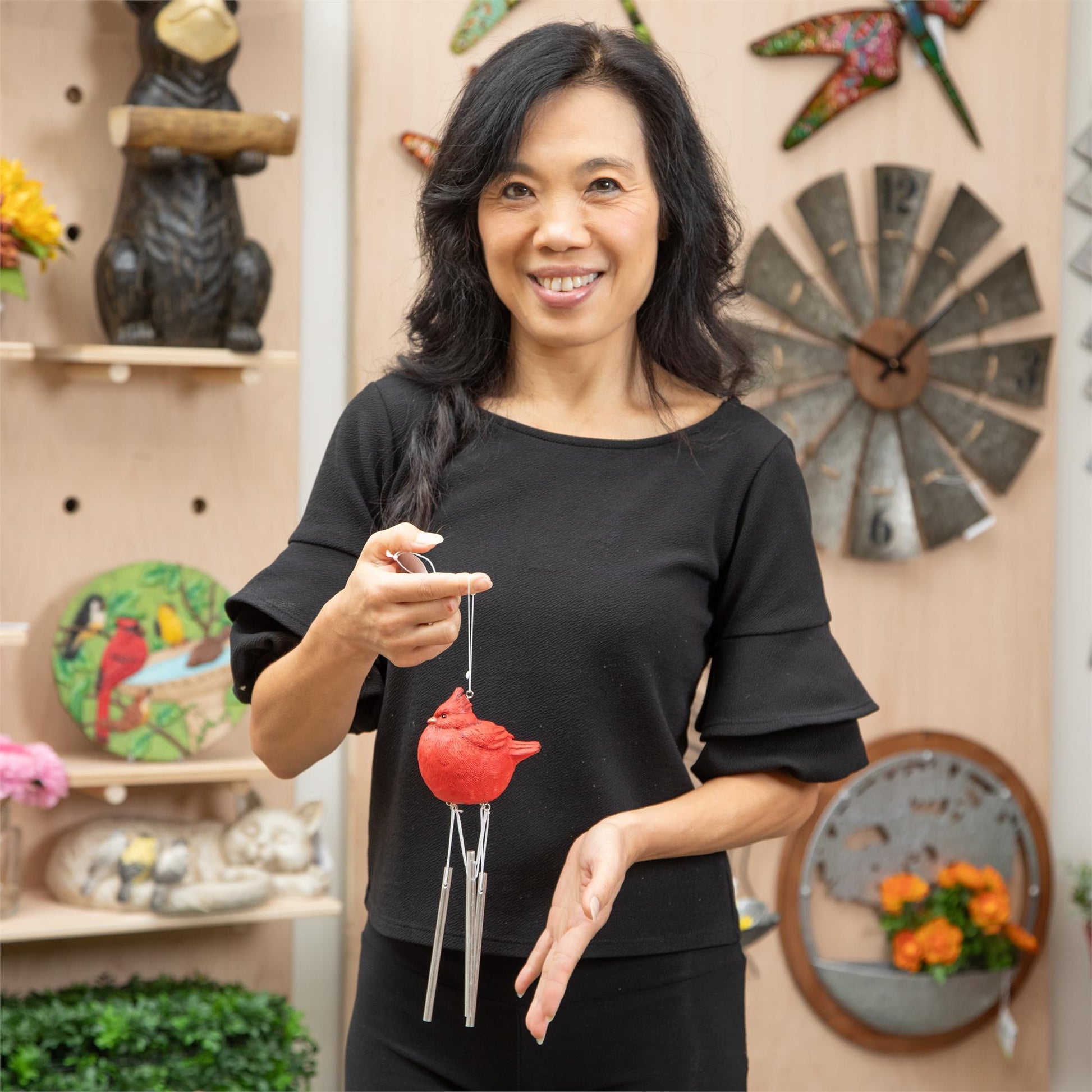 Add a touch of whimsy to your porch or garden with this portly cardinal mini wind chime. Featuring a plump red bird perched atop metal chimes, it sings sweetly in the breeze while bringing cheerful charm to any outdoor nook. Lightweight, giftable, and full of personality.